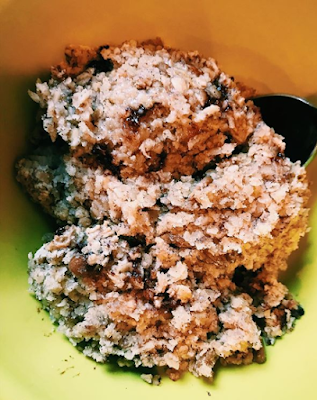 Mix all ingredients together and bake in an 8x8 pan or 8in pie dish at 350 for 30 min. Double the recipe to fill a 9x13 to feed a bigger crowd.